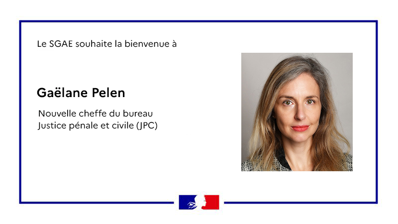 Nouvelle conseillère juridique, cheffe du bureau questions juridiques et institutionnelles, propriété intellectuelle, contentieux qui rejoint le SGAE à compter du 20 novembre.