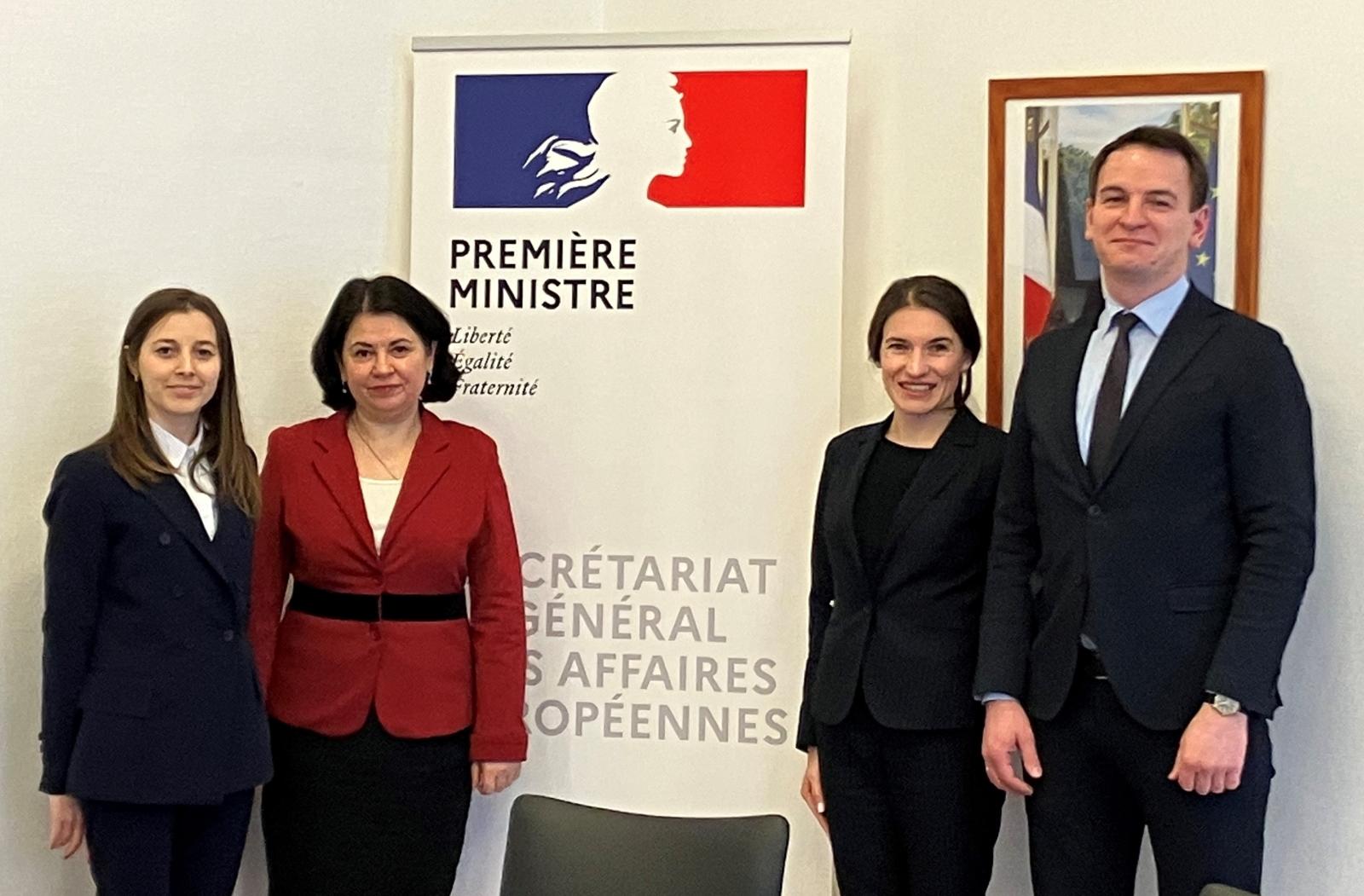 Cette semaine le SGAE accueille Mmes Carolina Bogatiuc, conseillère du vice-premier ministre et ministre des Affaires étrangères et de l’Intégration européenne, Lilia Țicu, conseillère affaires politiques à l’ambassade de la République de Moldova en France, Anna Vatamaniuc, secrétaire de la section des traités multilatéraux à la direction du droit international du ministère des Affaires étrangères et de l'Intégration européenne et M. Anton Lungu, chef d’unité pour la coopération économique et sectorielle à la direction de l’intégration européenne du ministère des Affaires étrangères et européennes de la République de Moldova.